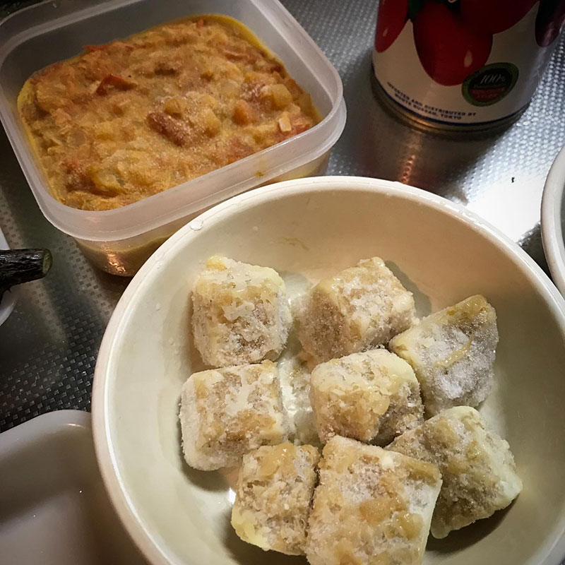 冷凍庫で熟成中のトマトソースも数あるので