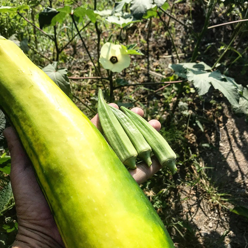 ズッキーニの収穫。ちょっと大きくしすぎた。
