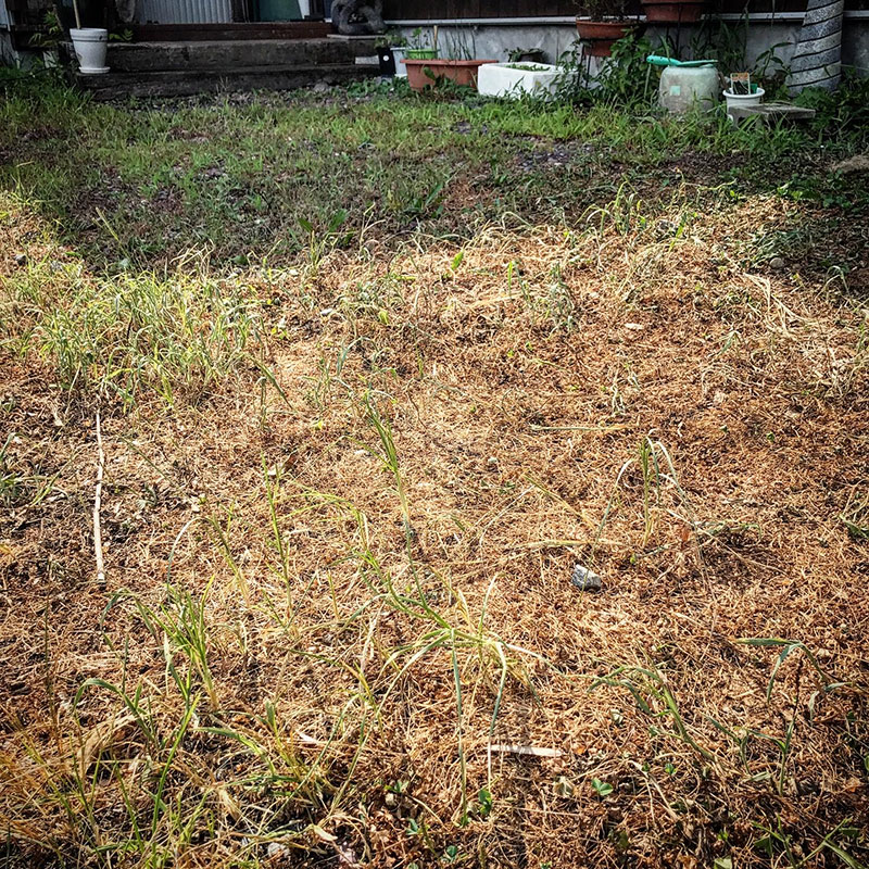 玄関前の一日中、陽が当たる所は草刈りしなくても異常な暑さに枯れてるよ(恐)午前だけ、とか午後だけ陽が当たるところは緑。少しのことでこれだけ違うんだなぁ。家建てる時もほんの少しの違いで温かい家になったり一年中寒い家になったりする。