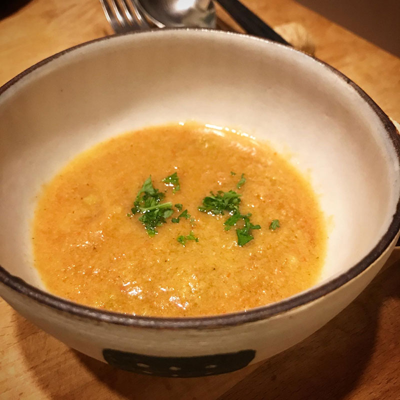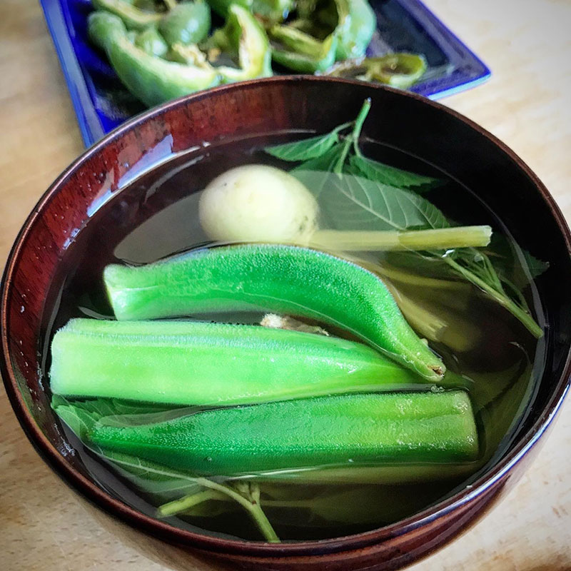 オクラとカブとモロヘイヤの具沢山お吸い物。