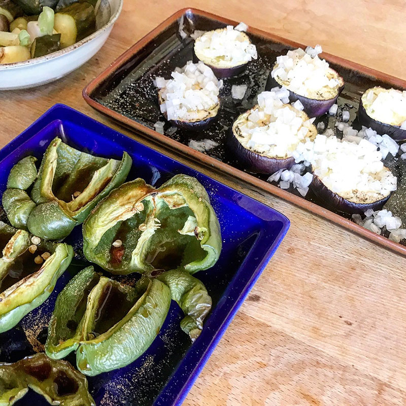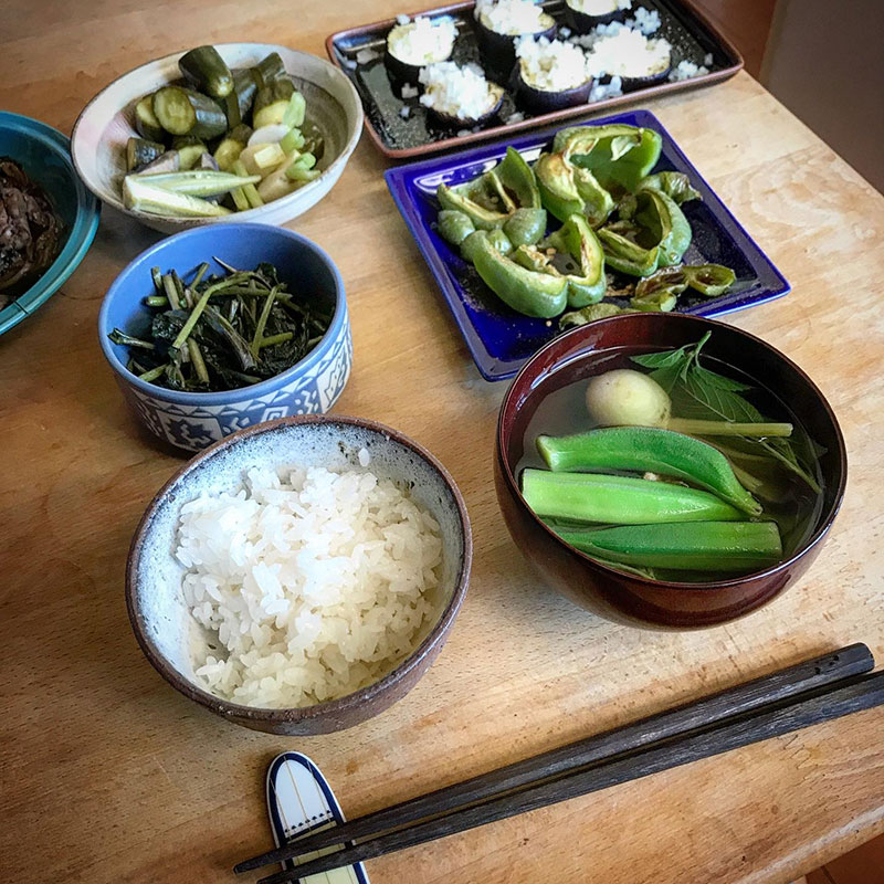 ピーマン、茄子はグリル。きゅうり、オクラ、茄子のぬか漬け。