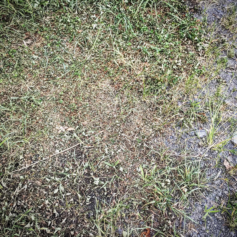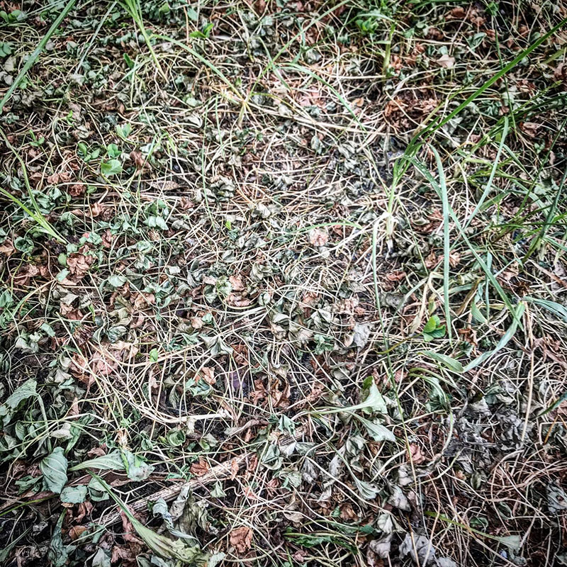あまりの暑さに地面を這ってる草が軒並み枯れている。