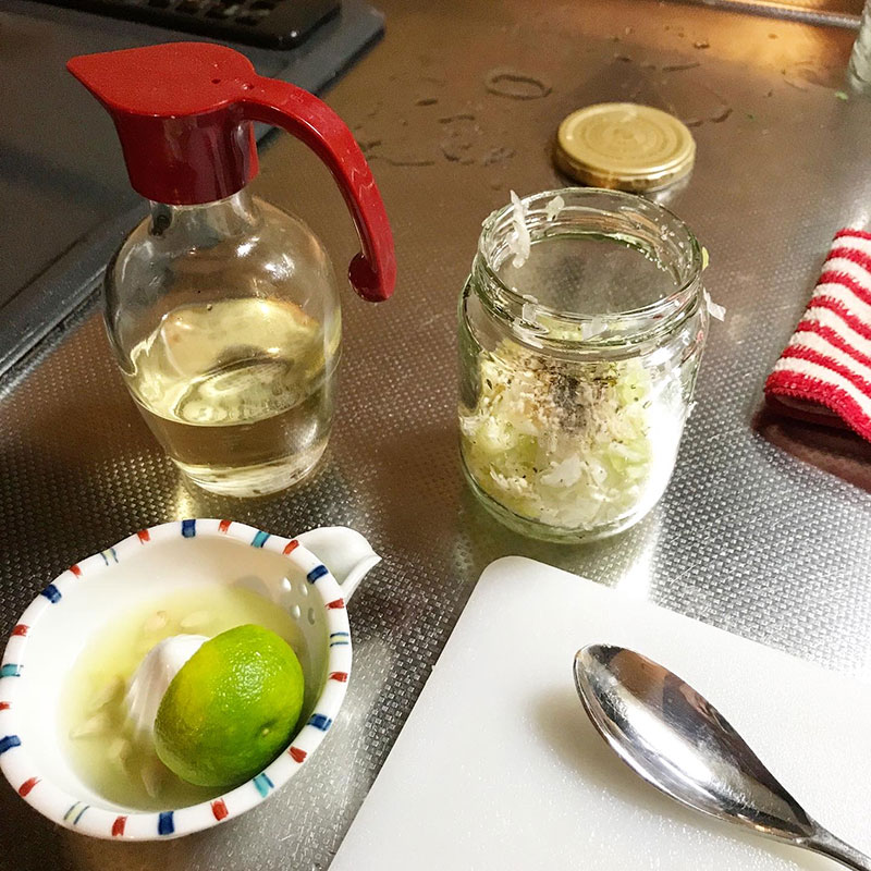 食後、ネギ塩だれ仕込んだ。レモンの代わりにすだちで。