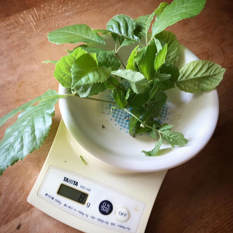 前回の収穫からやっと育った葉はこれで8gだった。必要な100gまであと52g。それまで冷凍保存。