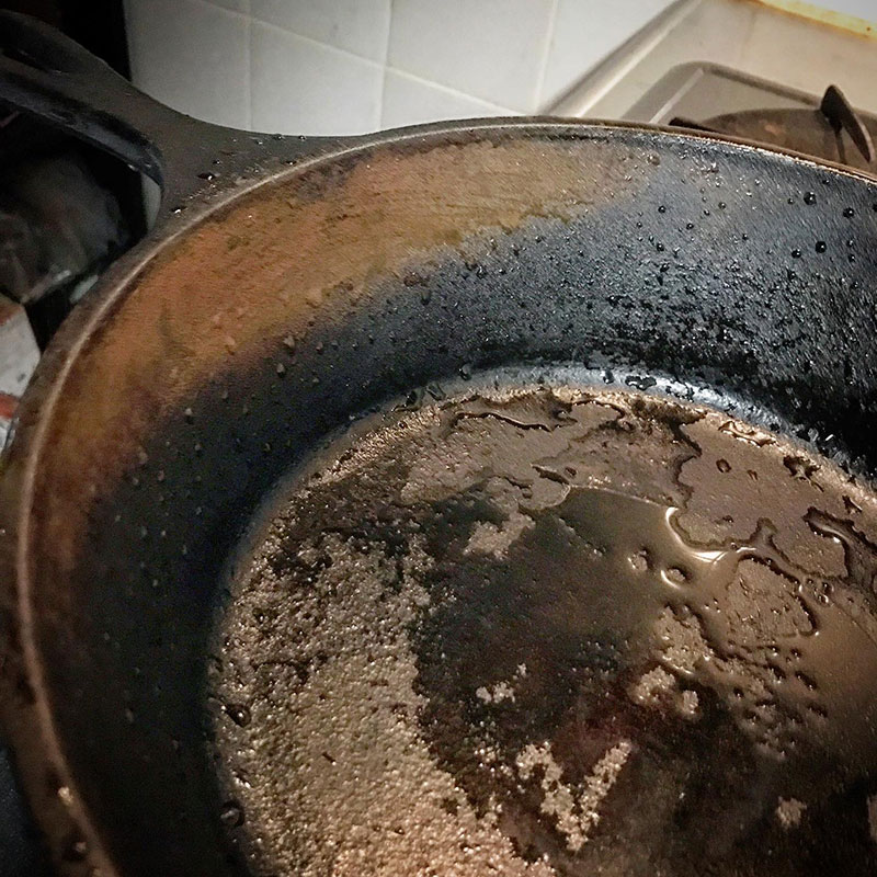 きれいなブラックポットに育っていたんだけどなぁ。でもそればかり考えてると使うのが億劫になってしまうからこのくらいのゆるさは良いのだ。