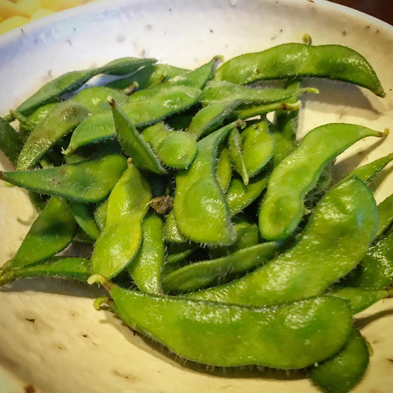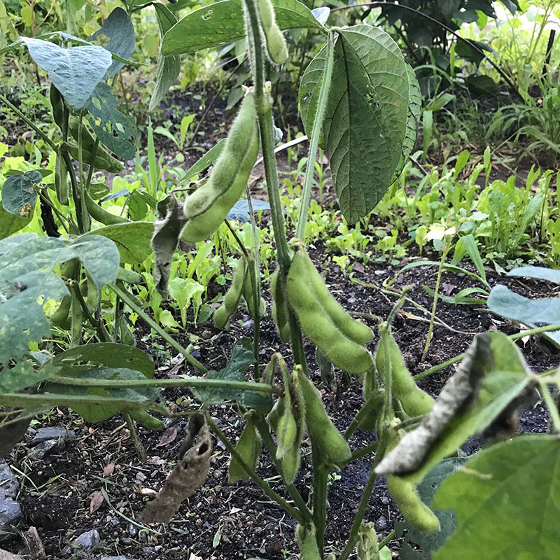 有機農業をやってる友だちのみどりさんに種を分けてもらって育てた中生の枝豆、盆香り。