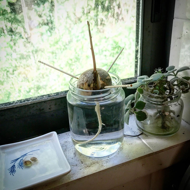 台所の良く日の当たるところで水栽培していたアボガド。
