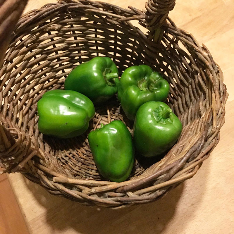 畑に大きなピーマンがいくつもなってるので