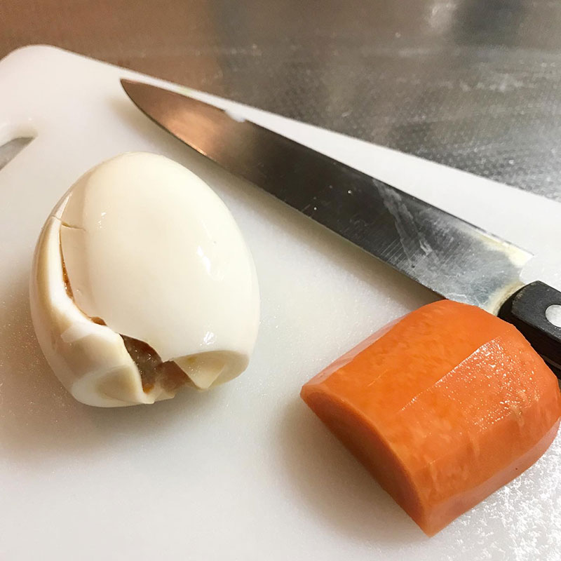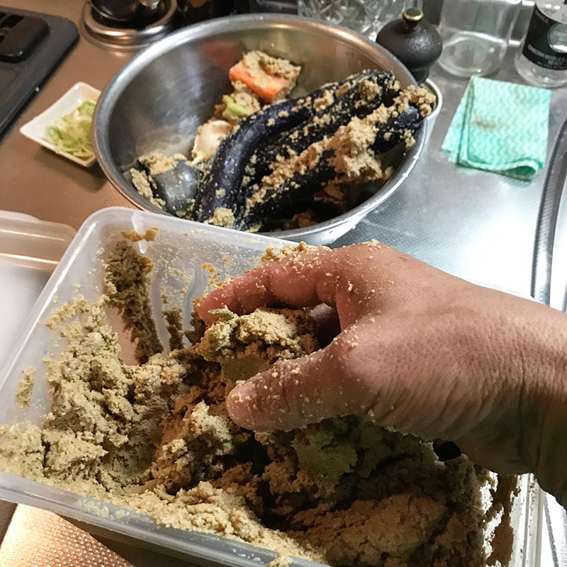 ぬか床の中で半熟ゆで卵が柔らかすぎて割れてしまってたので