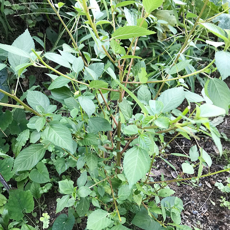 ほとんどのモロヘイヤの茎が緑から赤に変わってしまった。葉が硬くなって美味しくなくなる合図。