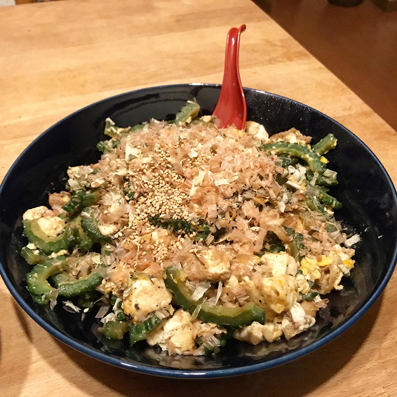 きゅうりとゴーヤで緑のカーテンを育ててるんだけど未だにゴーヤが実らず(苦笑)近所の方にいただいたので夏の終わりに今シーズン初ゴーヤチャンプルー。苦い、美味い。