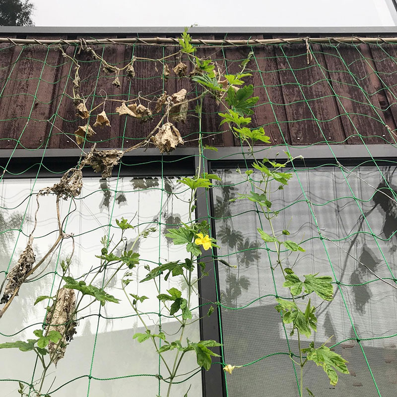 家の音楽教室の大窓に設置した緑のカーテンの定点観測。15週間目。