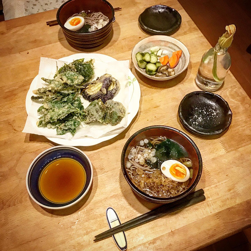 ついでに大葉、茄子、ピーマンも収穫して天ぷらに。 #月曜日は麺曜日