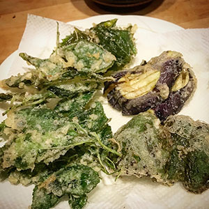 ついでに大葉、茄子、ピーマンも収穫して天ぷらに。 #月曜日は麺曜日