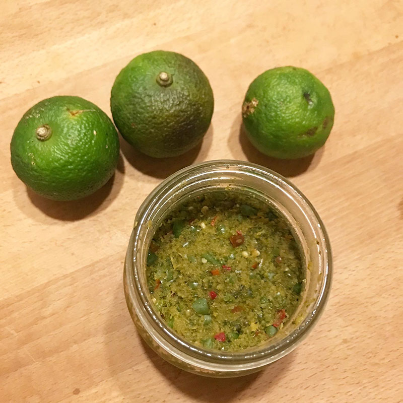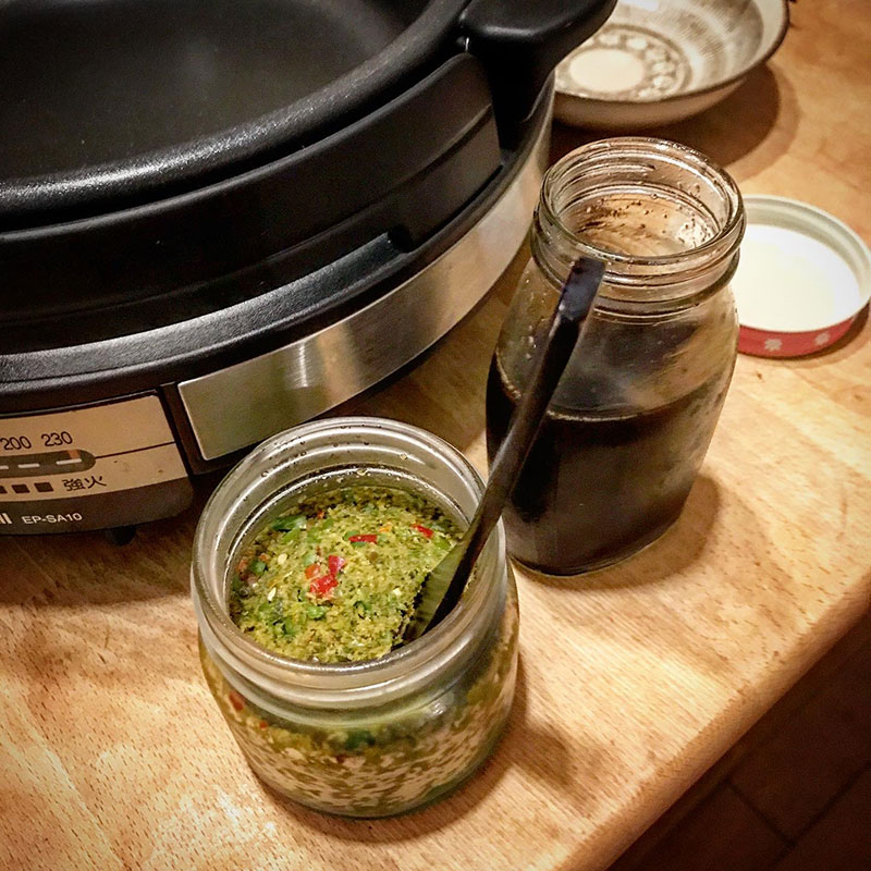 3日前に仕込んだ自家製の柚子胡椒とそれを作った残りの実で作った自家製ゆずぽんの味見のために。