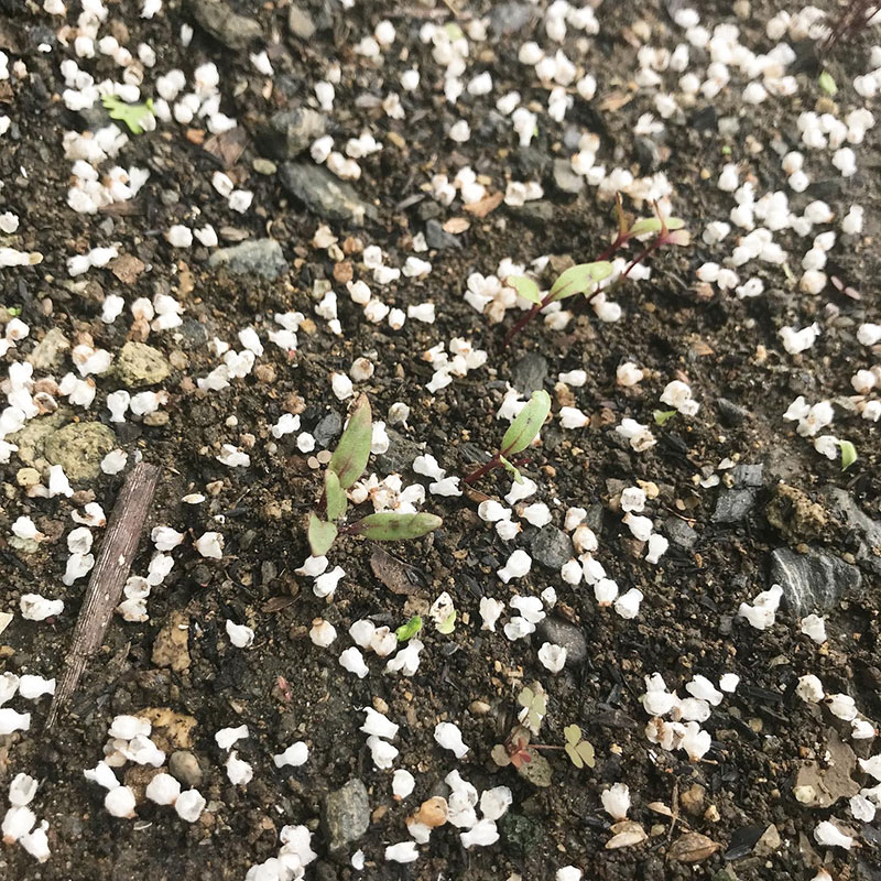 桜吹雪みたいになってる。白い花の中にボルシチを食べたくて植えているビーツ。