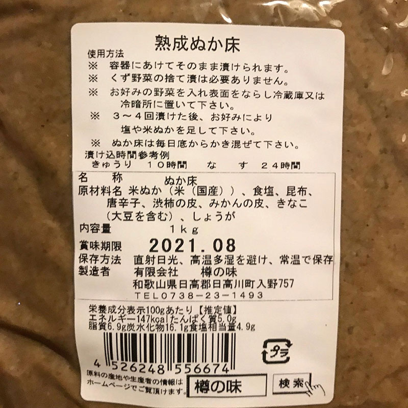 樽の味の熟成ぬか床を買ってみた。