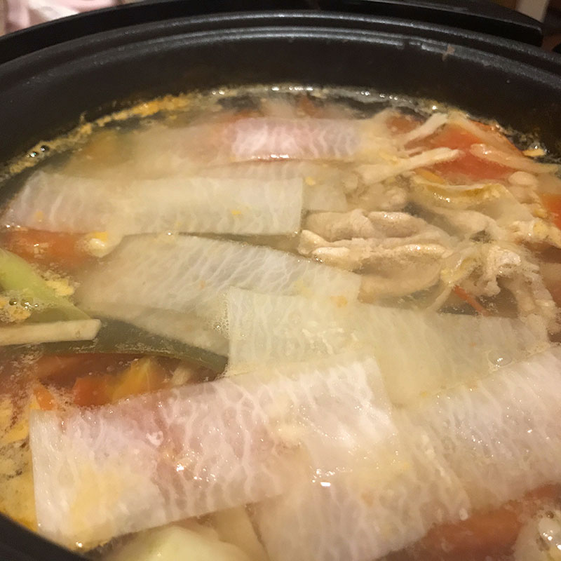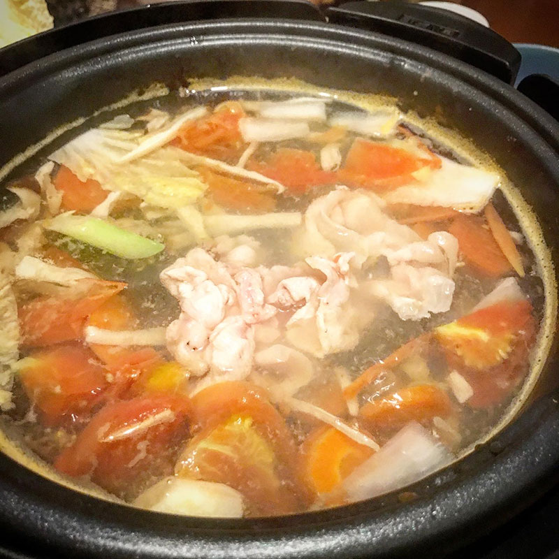 今日は寒くなったので鍋が嬉しい。今宵は水出し昆布とたっぷり入れたトマトのだしで具材を煮る鍋。