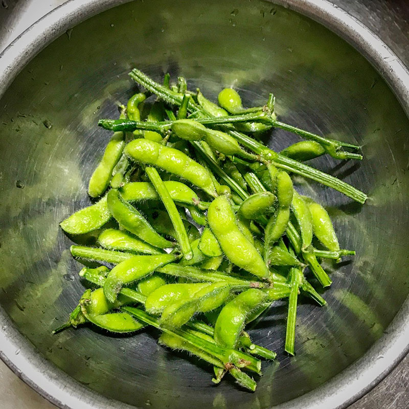 畑の枝豆も美味しい。ていうかめちゃくちゃ美味しい。茹でずに蒸したからか、秘伝豆の実力か。