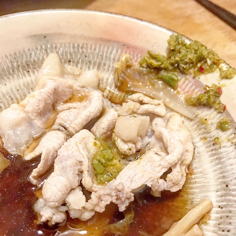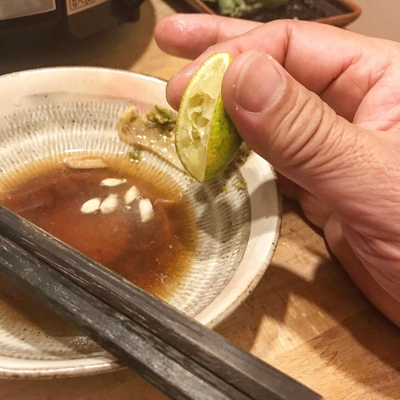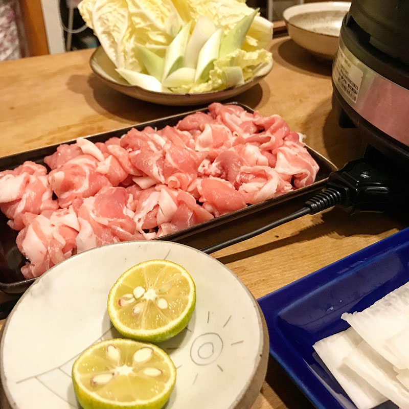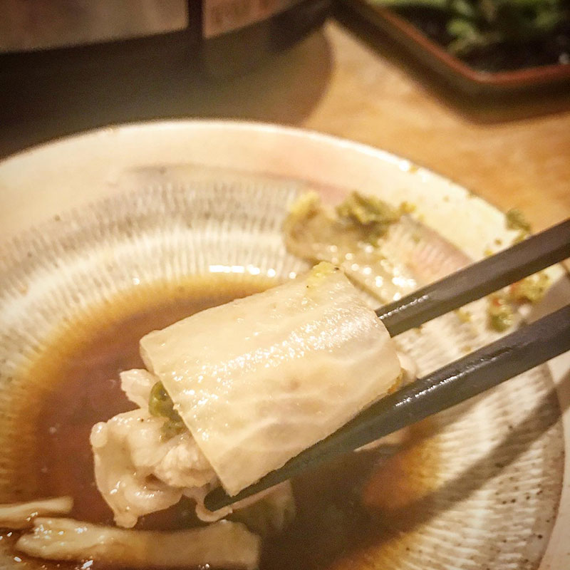 自分で作ったポン酢と柚子胡椒で。美味しい。