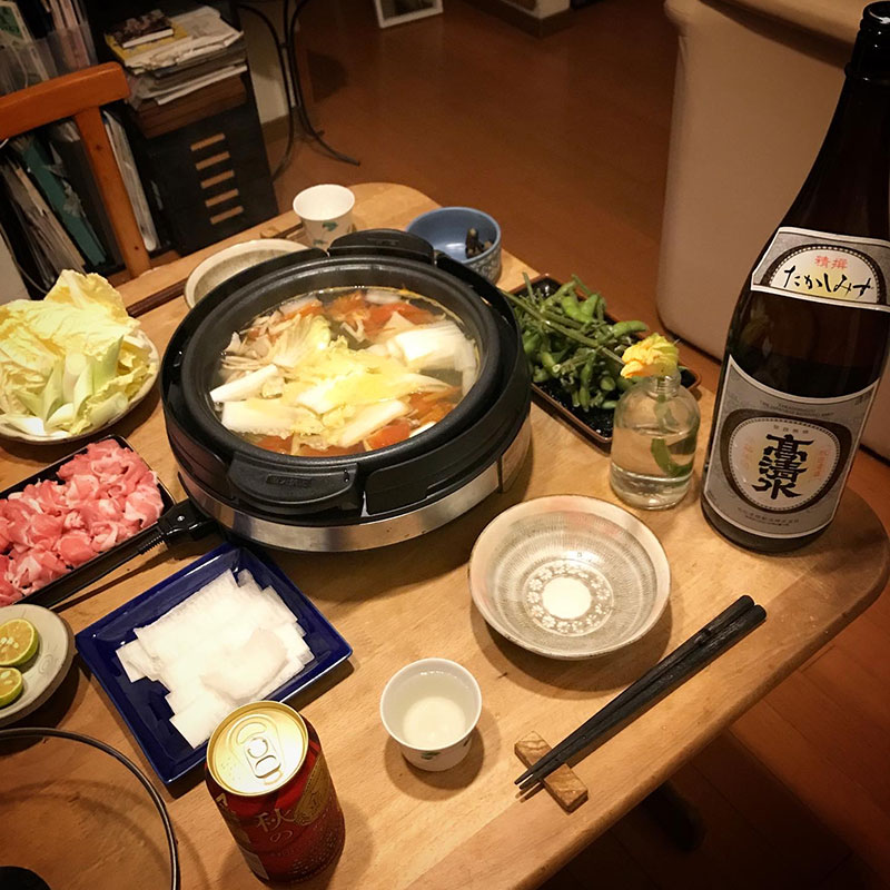 居酒屋我家、開店。カミさんも僕も夕方まで仕事なので鍋の予定にしてた。これから半年くらいはふたりとも忙しい日は鍋が登場する頻度がかなり高い。