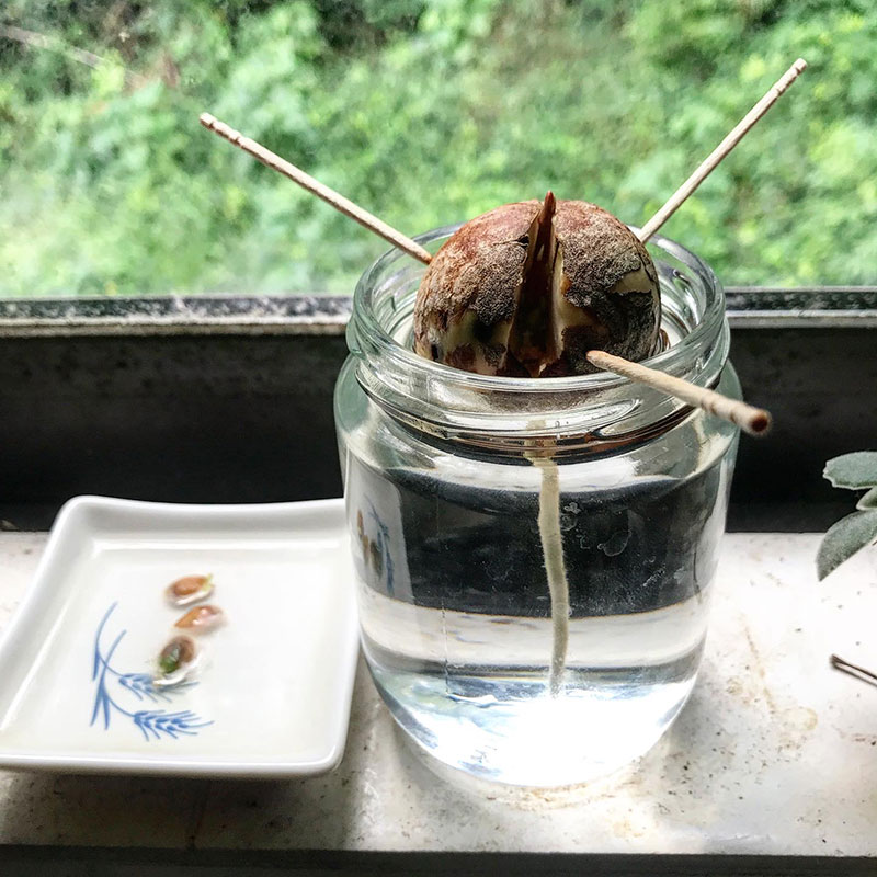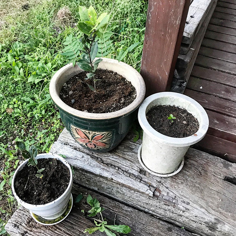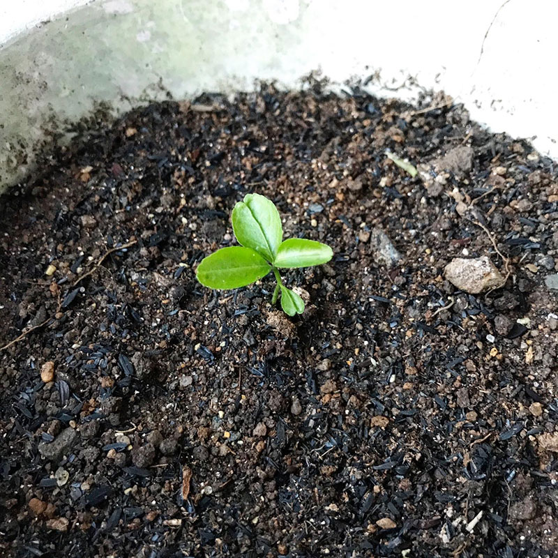 すだちを食べた後のたくさんの種をまいた中からたったひとつ芽を出した貴重なすだち。大事に育てる。
