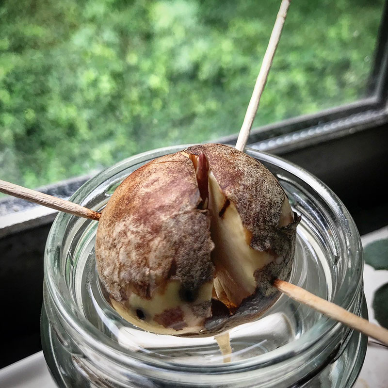 割れた中に見えてた芽が種の外まで伸びてきた。