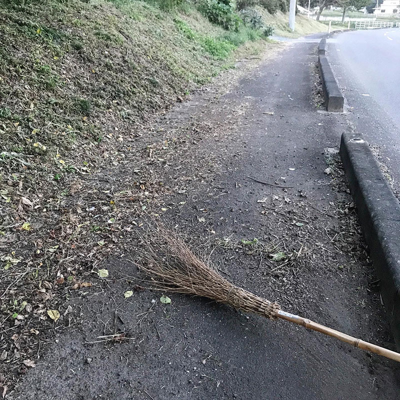 先日、ナイロンコードで家の土手を草刈りしたままだったので歩道に草や土が飛び散ったまま。仕事終わりに夕方竹箒で掃いていたらいつも新鮮な野菜や梅干しをくれる近所の方が通りかかったので畑の情報交換。茄子がまだまだとれてるから今度持ってきてけっから(あげるから)って。