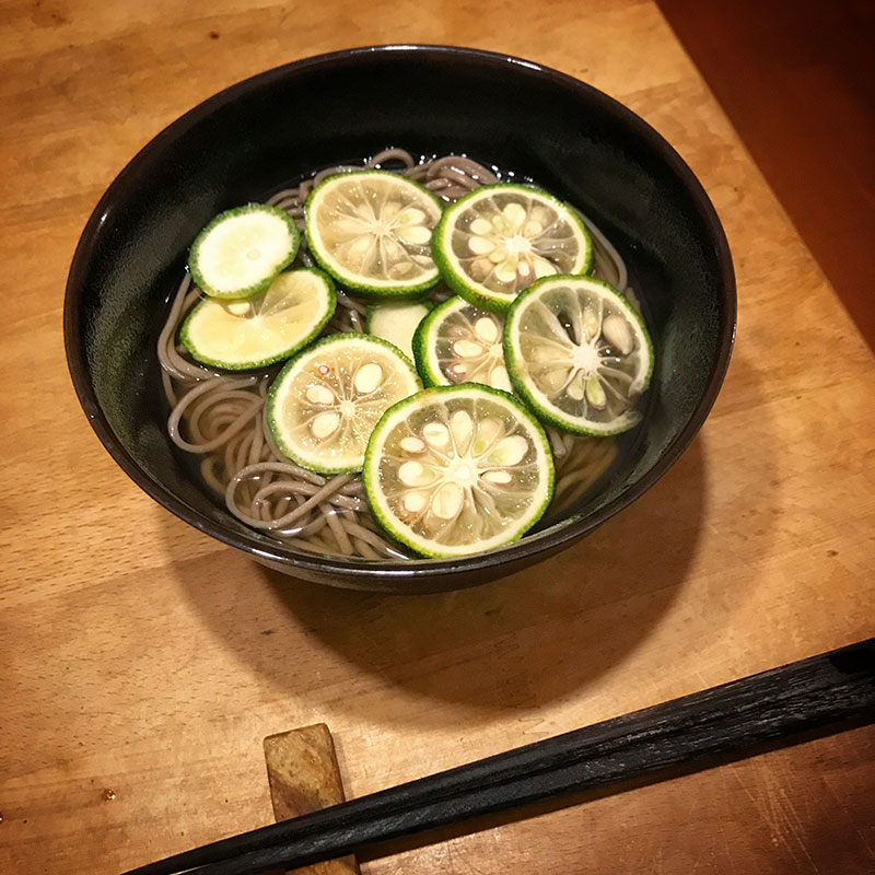 昨日、柚子胡椒を作った青柚子がまだ少し残っていたので今宵の蕎麦は柚子蕎麦。つゆに酸味が加わって美味しい。。。だけど後半酸味だけでなく苦味も加わってきて焦って急いで食べ終わった。 #月曜日は麺曜日