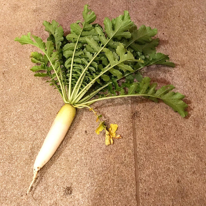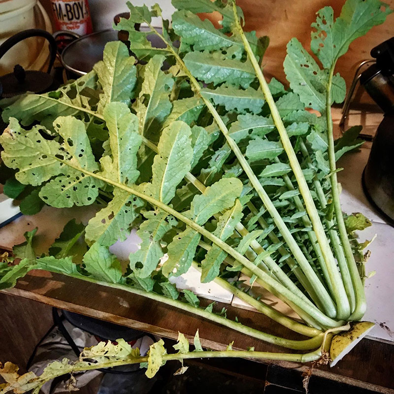 今宵の鍋用に畑から大根抜いた。カミさんも僕も大根葉が大好きなのでそのために育てている。無農薬だし。