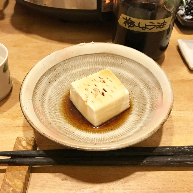 絹ごし豆腐は梅干しを漬けた醤油で。