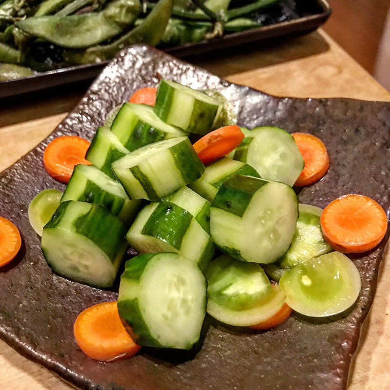 ぬか漬け。きゅうりとニンジン。赤く熟してくれない畑の青いミニトマトもぬか漬けにしてみたんだけど翌日、翌々日ははっきり言って不味かった。それが4日目を過ぎる頃からなんか美味しくなってきたぞ。