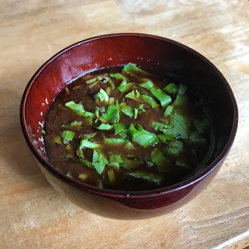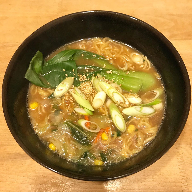 丼に移して畑の最後の青梗菜と長ネギと白ゴマトッピング。