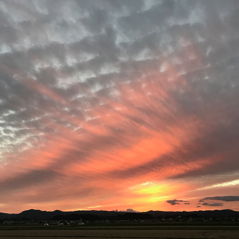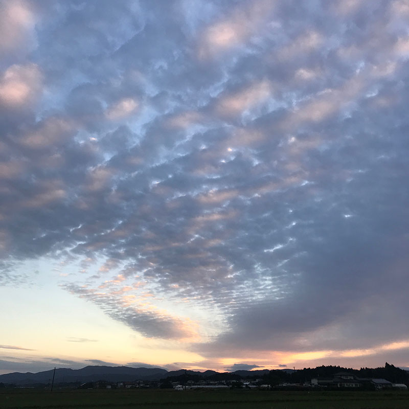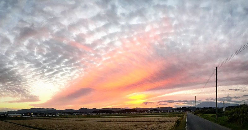 うろこ雲の夕焼け