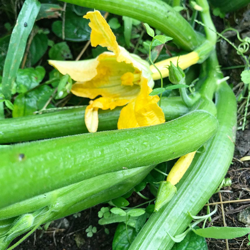 雄花ばかり咲いていたズッキーニ 。超久しぶりに雌花が咲いたので