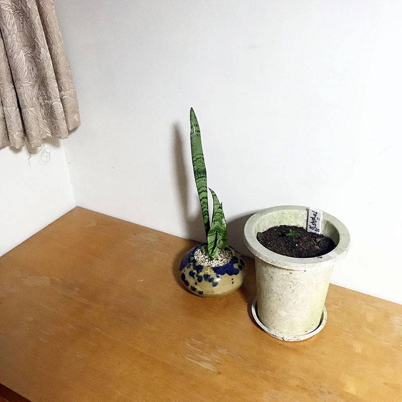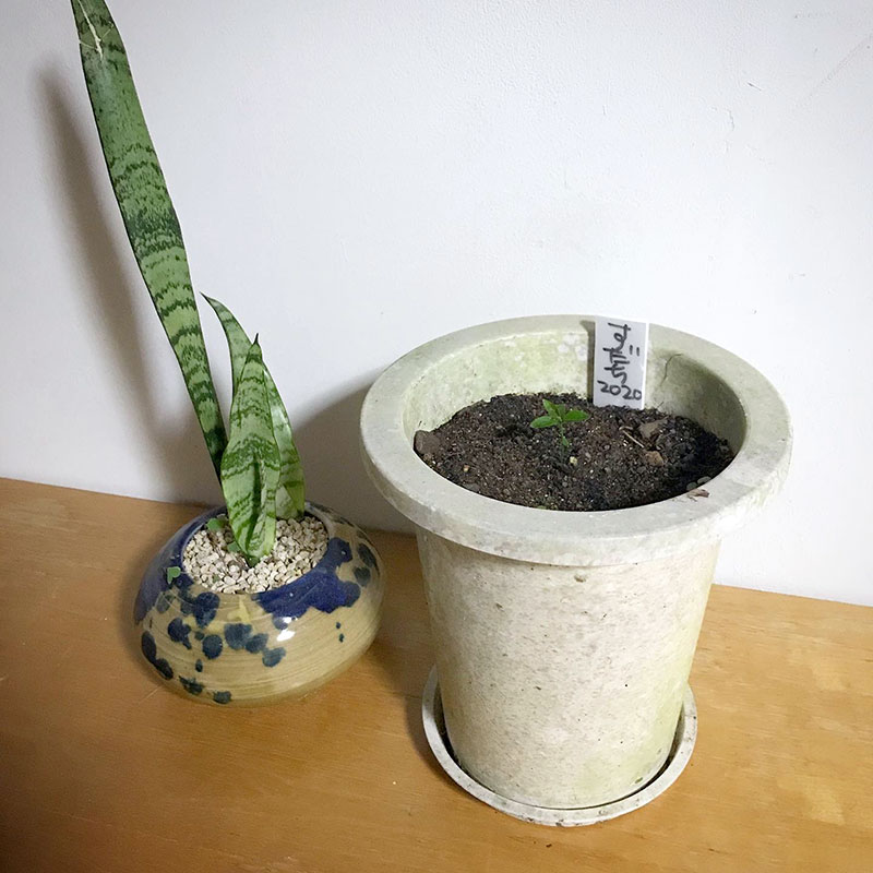 せっかく芽を出してくれた徳島のすだちを東北の冬に外に出しておけない。居間で使っていたローテーブルが少し痛んできたので空き部屋に移して鉢の台にする。冬の間は家の中のこの窓際に置いて育てる。