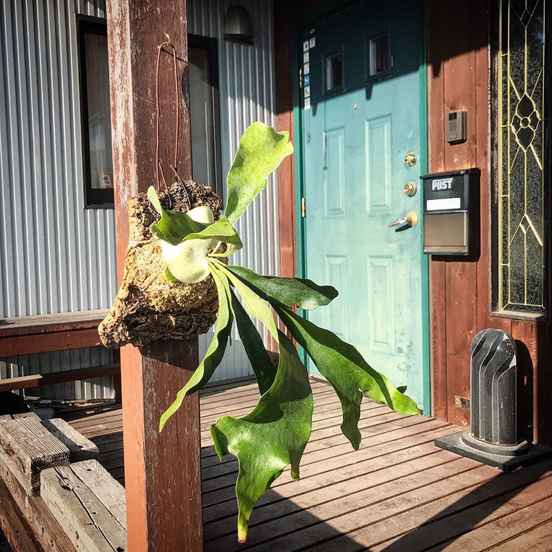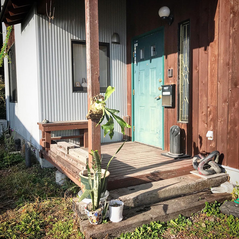 本格的な冬が来るまでは日中、陽の光に当てられる様玄関の柱にフックを取り付けた。