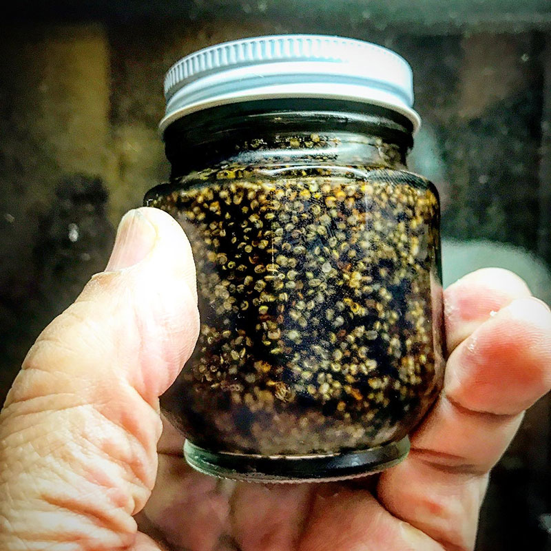 畑のコキアから収穫したとんぶり。教えられて醤油漬けに。