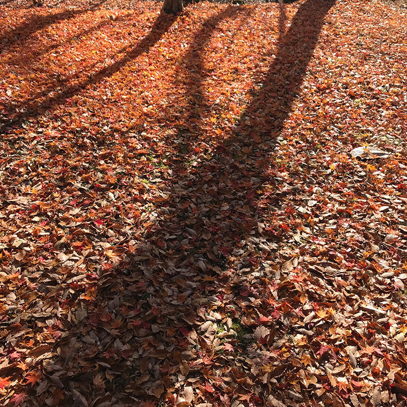 雨が降ったり晴れたりでしたが地面に絨毯を敷き詰めた様な紅葉が驚くほどの美しさでしたね。これは美しく紅葉し落葉し、しかも「風が吹かず」葉が飛び散る事無く積もる、という滅多に無い条件が揃ったからで地元の方もここまで美しいものを見ることは無いそうです。