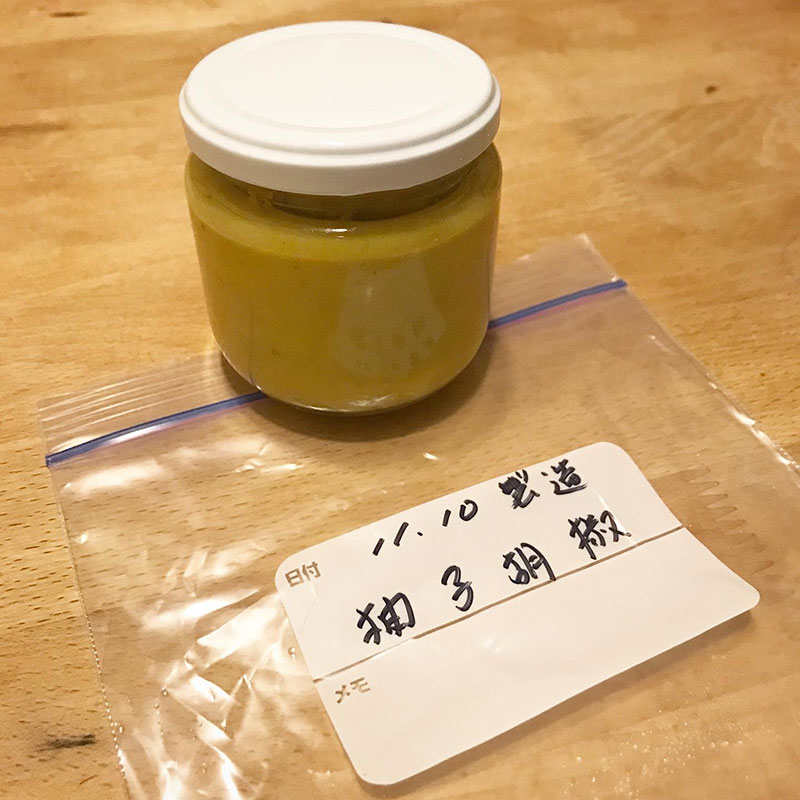 宮城では大きな青唐辛子が手に入りにくいので、あえての黄色の唐辛子を使って色もきれい。果汁も入れてるんだって。もちろん濾して。