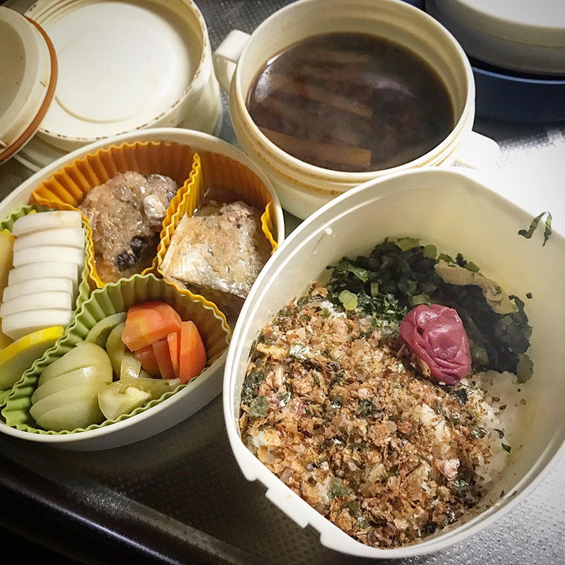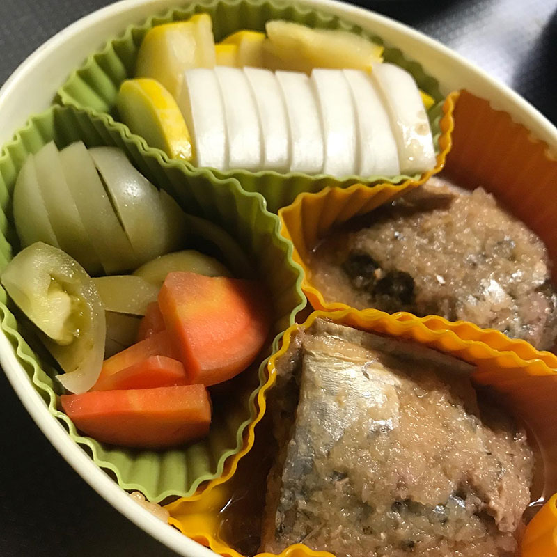 弁当詰めた。おかずのほとんどはぬか漬けだけどね・笑