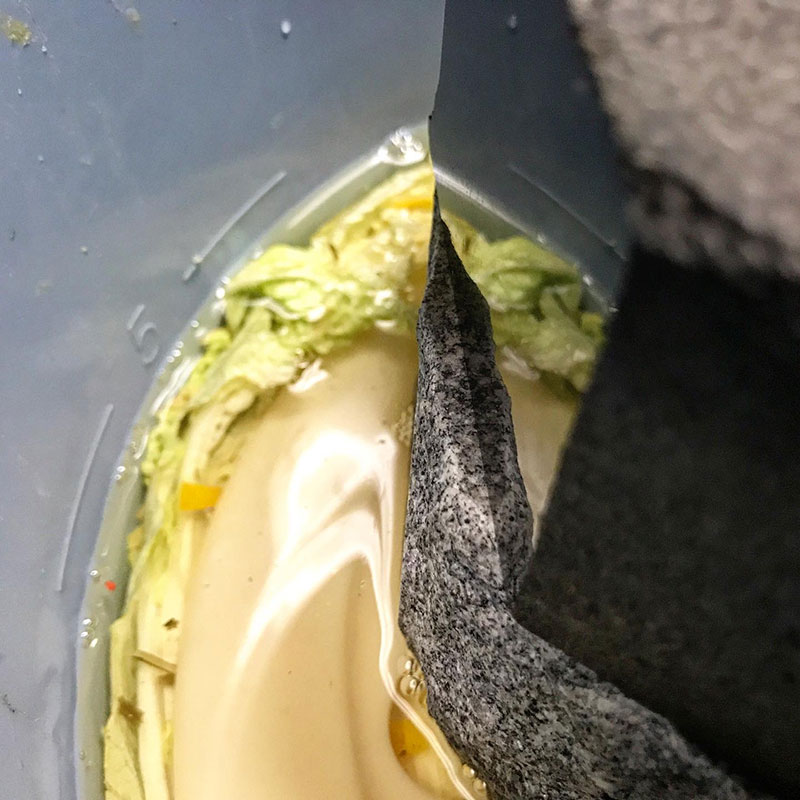 漬けて2日目の白菜。もう充分水が上がった。今宵、重石ひとつ外すか。