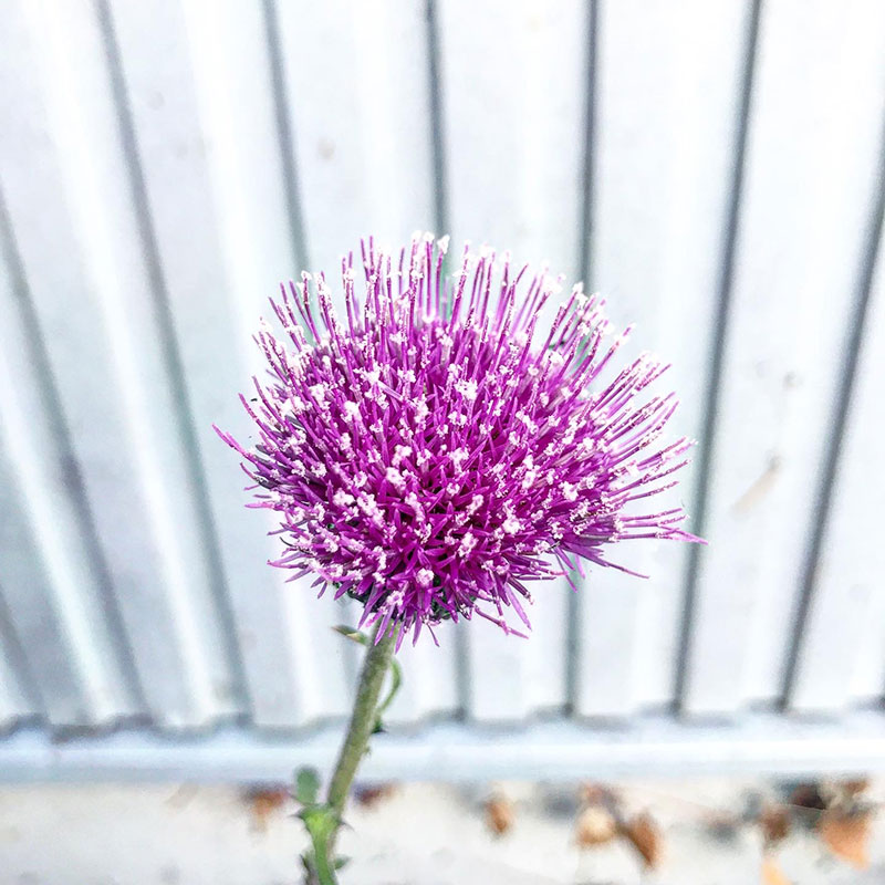 庭のアザミは狂い咲き。