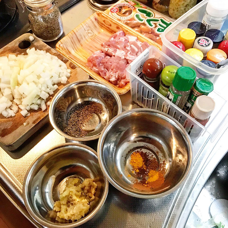 夕飯用にルー併用のスパイスカレー仕込んだ。
