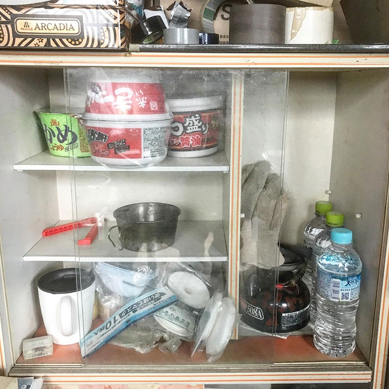 仕事の段取りとかで昼飯に家に戻りたく無い時に簡単に済ませられるようにカップラーメンとミネラルウォーターを買い置きできるように買って来た。電気以外は通って無いけどコールマンのワンバーナーで火を起こせるので。