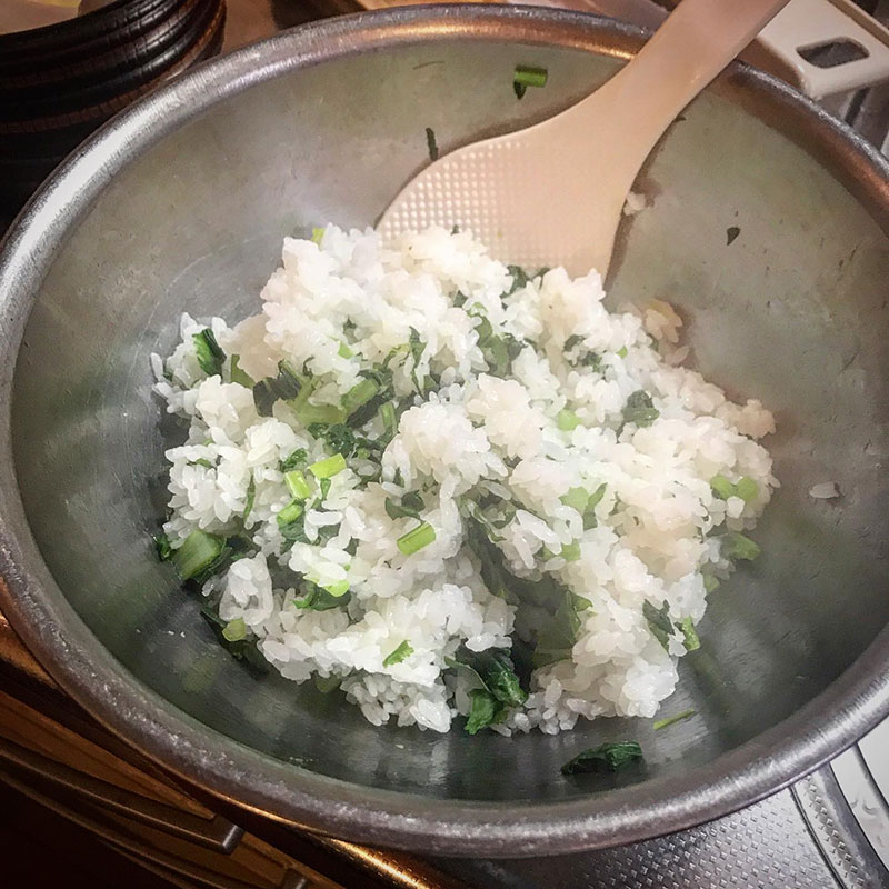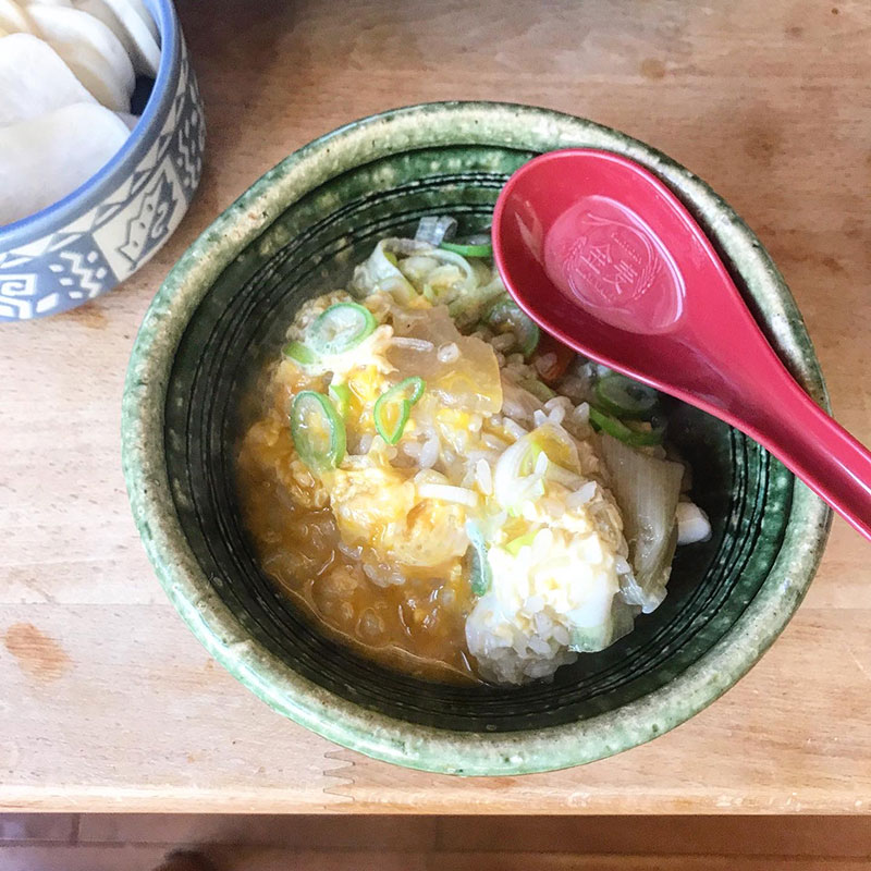 二晩楽しませてもらった比内地鶏の出汁の鍋は今日のお昼におじやになりました。