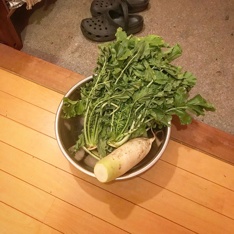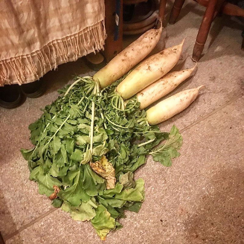 今日も一日、外で働いたんだよ。だから昨日、近所の方にいただいて玄関に置いたままの6本の大根、見てみぬふりしようと思ったんだけど、