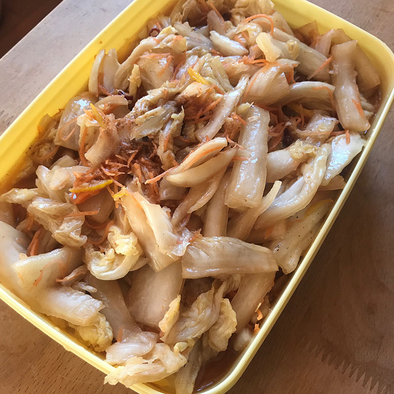 昨晩仕込んだラーパーツァイ出来上がり。連日のラーパーツァイ作りですし酢が切れてたので、お酢に沖縄の黒糖混ぜて作ったので少し茶色い・笑