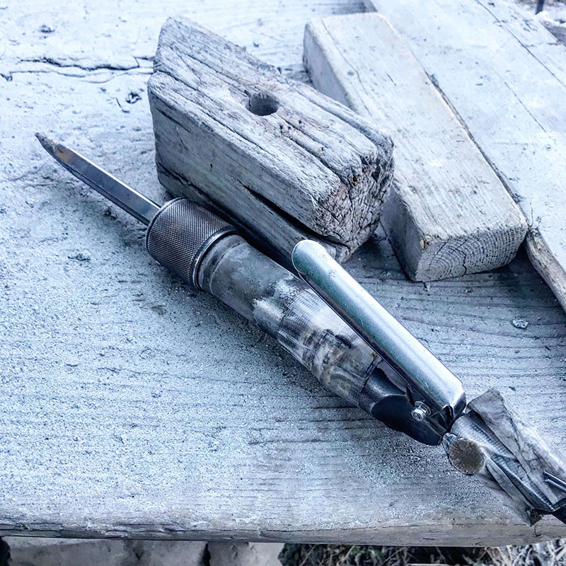 ただ圧縮空気で動かすエアーチゼルの中を空気が通っていくと氷の様に冷えてくる。