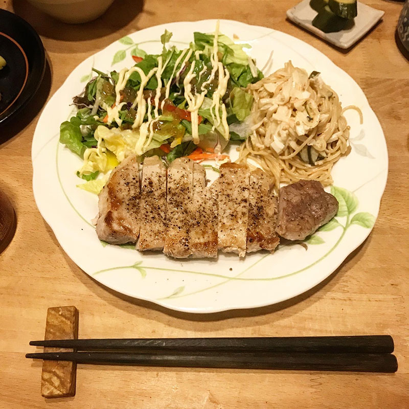 カミさんがポークソテー焼いてくれた。
